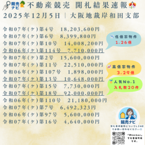 お知らせ 🎊【競売ナビ|開札結果速報】 📅 2025年12月18日|📍大阪地裁 堺支部