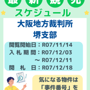 お知らせ 【期間入札まとめ|大阪地裁 堺支部】 2025/12/03〜12/11 入札物件一覧